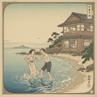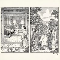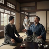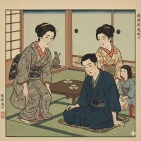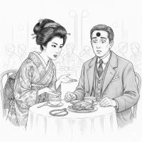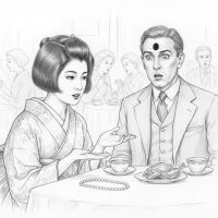 The core of the narrative is the guest's eccentric behavior and the geisha's bold and theatrical reaction to it.